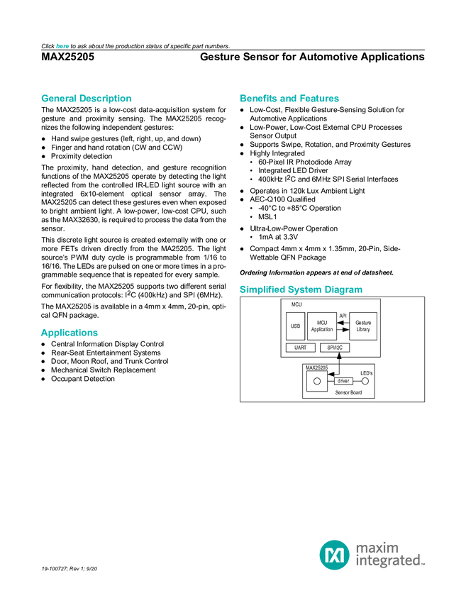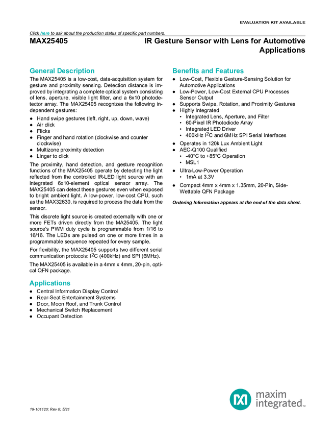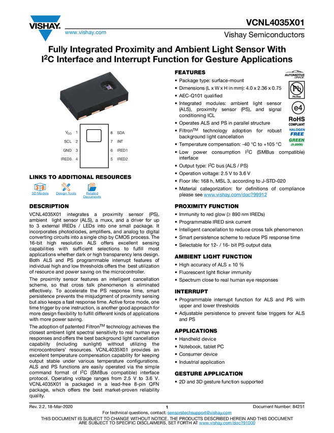 Fully Integrated Proximity and Ambient Light Sensor With I²C Interface and Interrupt Function for Gesture Applications