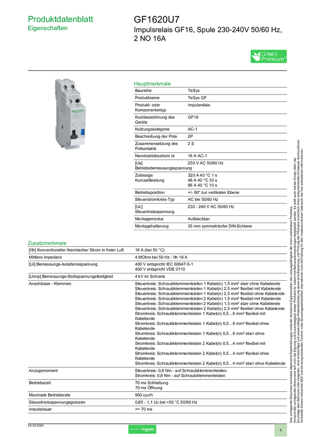 Stycznik pomocniczy Schneider Electric GF1620U7, 12 szt.