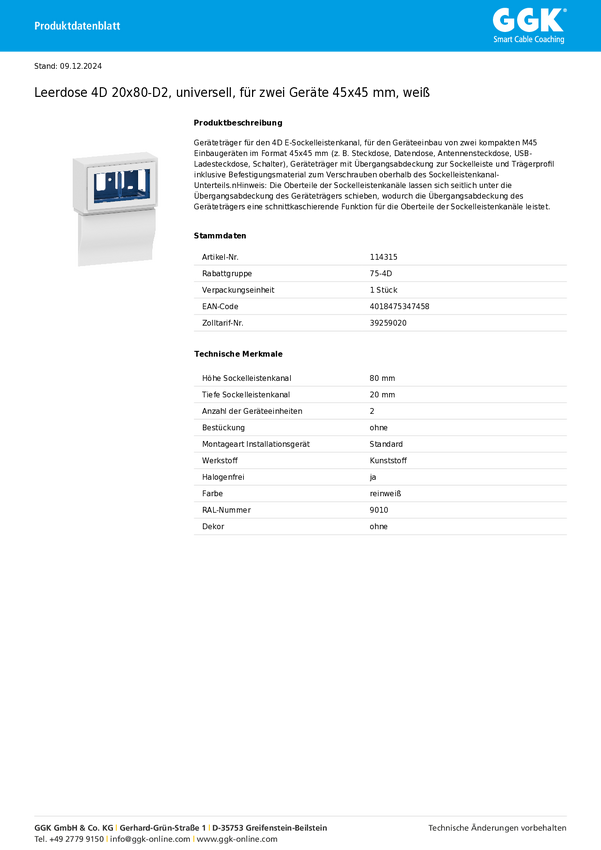 Skrzynka przyłączeniowa GGK 114315 1 szt.