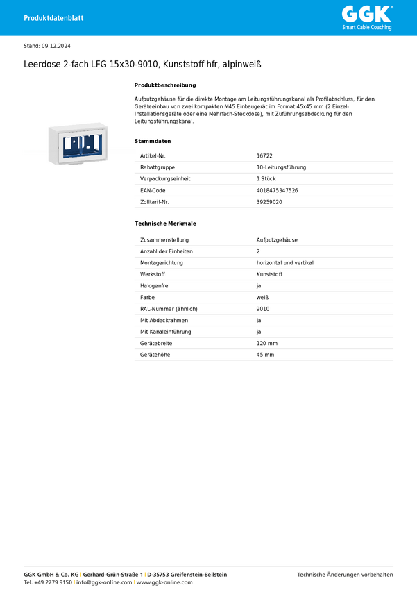 Skrzynka przyłączeniowa GGK 16722 1 szt.