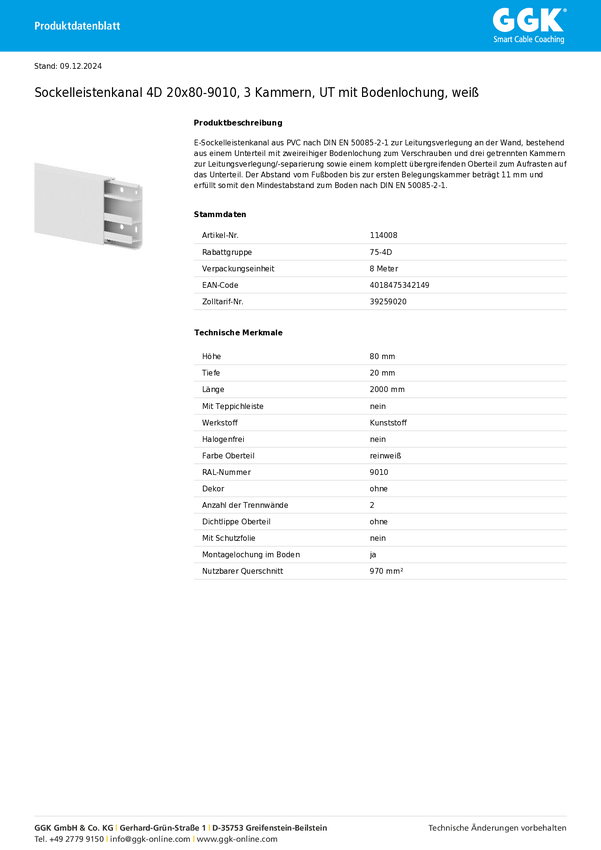 Kanał kablowy GGK 114007 8 m