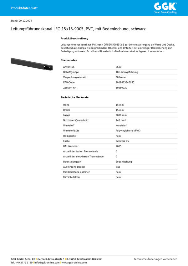 Kanał kablowy GGK 3631 72 m