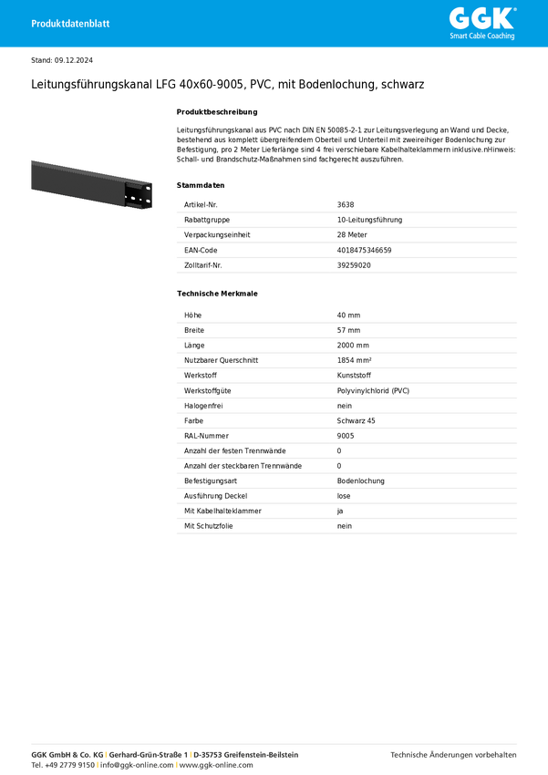 Kanał kablowy GGK 3638 28 m