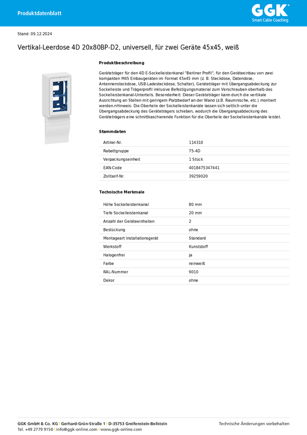 Skrzynka przyłączeniowa GGK 114310 1 szt.
