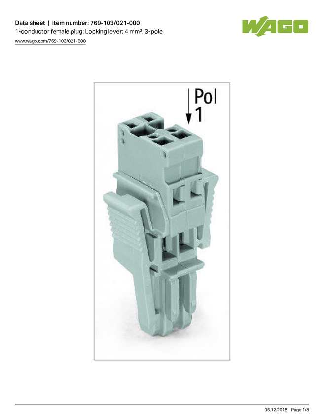 X-COM gniazdo 1-przewodowe 3-biegunowe szare WAGO GmbH & Co. KG WAGO 769-103/021-000 Zawartość: 25 szt.