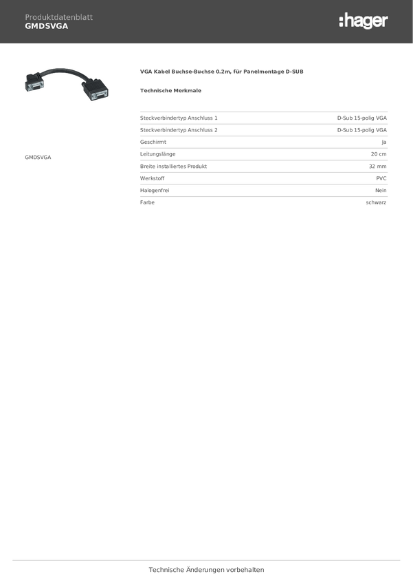 VGA-Kabel Hager Tehalit GMDSVGA, VGA do VGA, 0.20 m