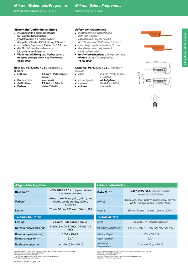 Schützinger Przewód pomiarowy bezpieczny 200 cm zielono-żółty 1 szt.