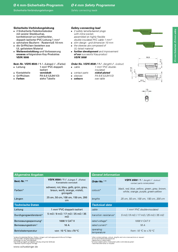 Schützinger Przewód pomiarowy bezpieczny 100 cm zielono-żółty 1 szt.