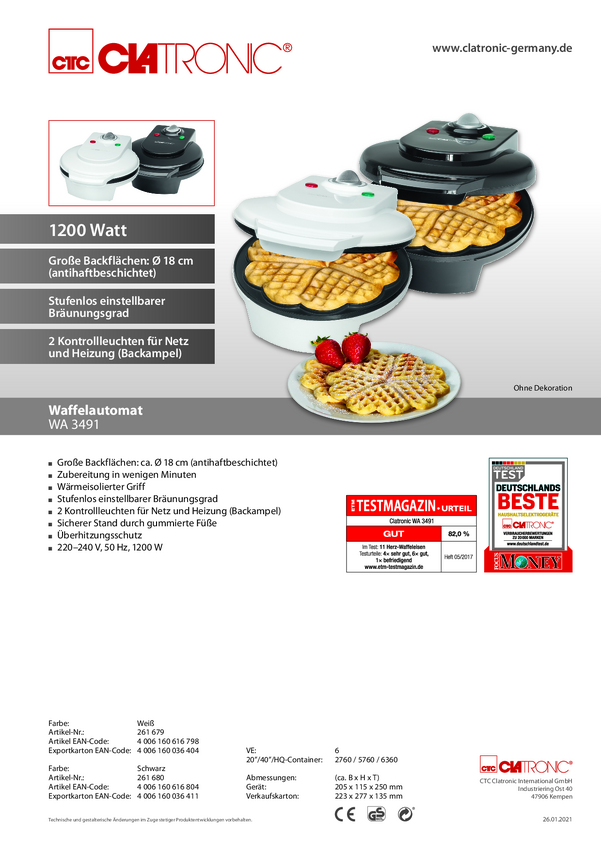 Gofrownica Clatronic WA 3491 powłoka nieprzywierająca, biały