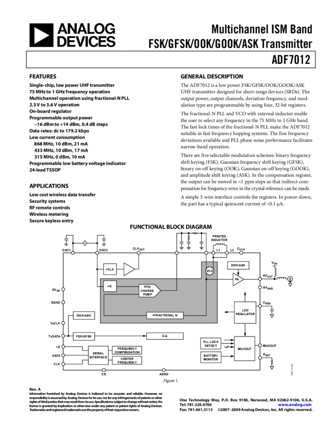 Multichannel ISM Band FSK/GFSK/OOK/GOOK/ASK Transmitter