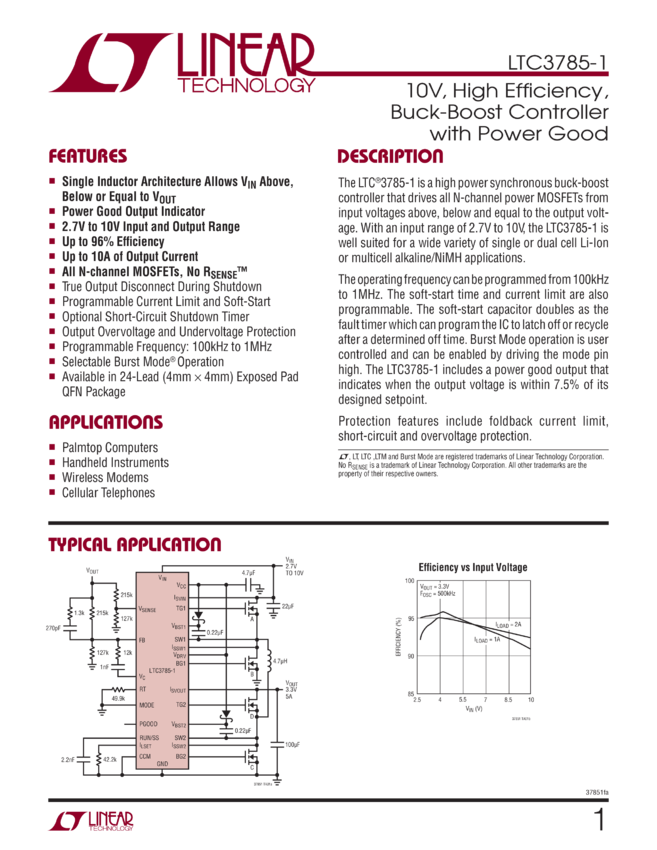 10V, High Efficiency, Buck-Boost Controller with Power Good
