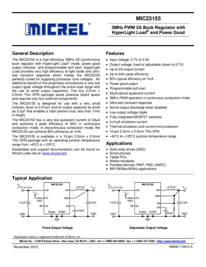 MIC23153 - 4MHz PWM 2A Buck Regulator with HyperLight Load® and Power Good (11/05/2015)