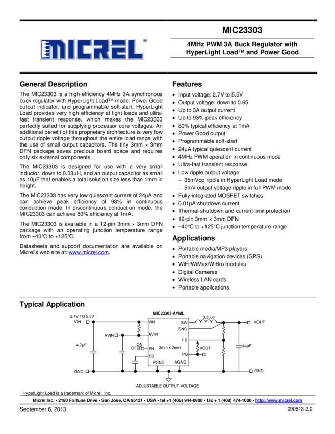 MIC23303 - 4MHz PWM 3A Buck Regulator with HyperLight Load? and Power Good (11/05/2015)