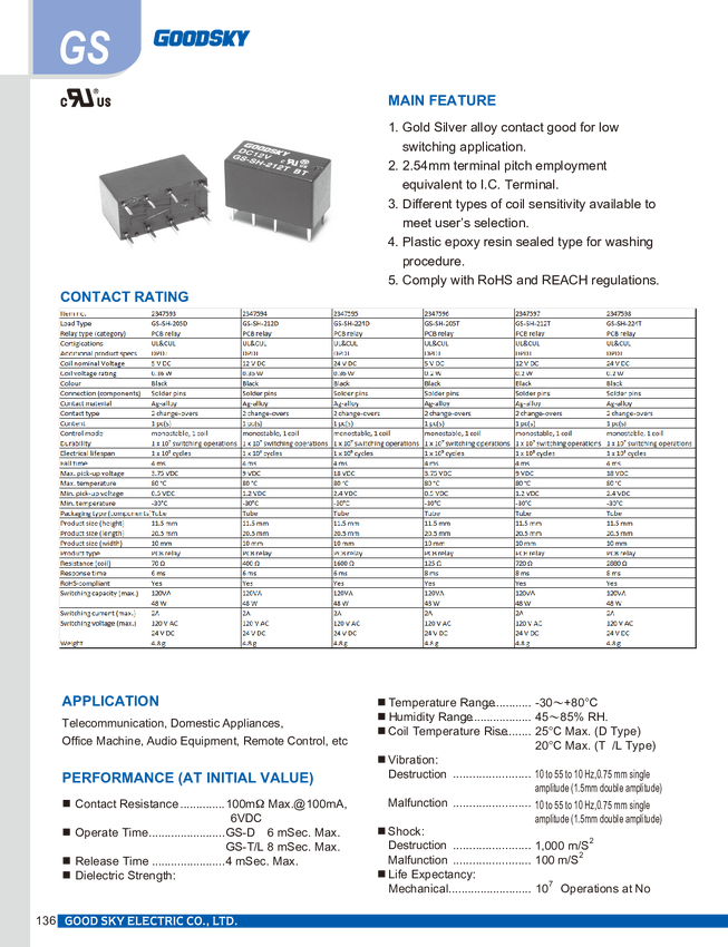 GoodSky GS-SH-212T Przekaźnik SMT 12 V/DC 2 A 2 zestyki przełączne 1 szt. tuba