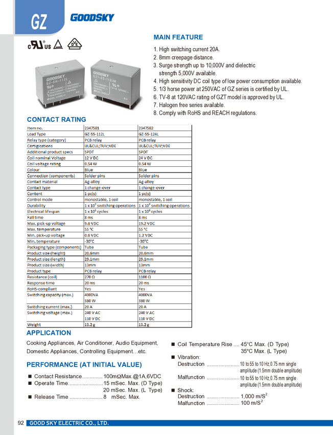 GoodSky GZ-SS-112L Przekaźnik SMT 12 V/DC 20 A 1 zestyk przełączny 1 szt. tuba