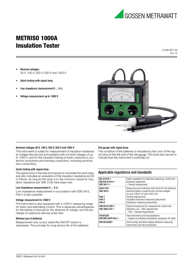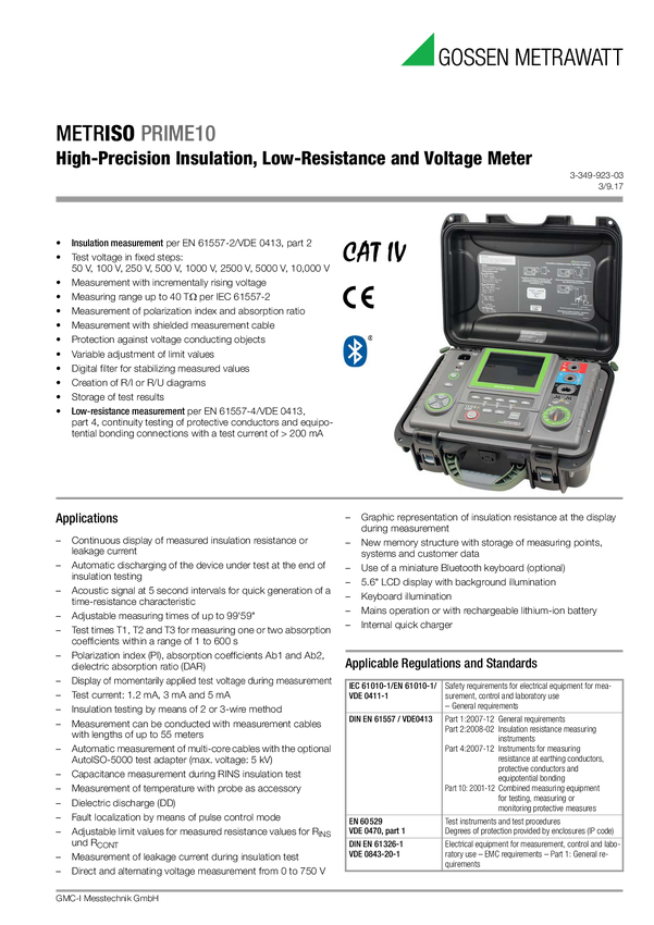 Miernik rezystancji izolacji Gossen Metrawatt METRISO PRIME 10