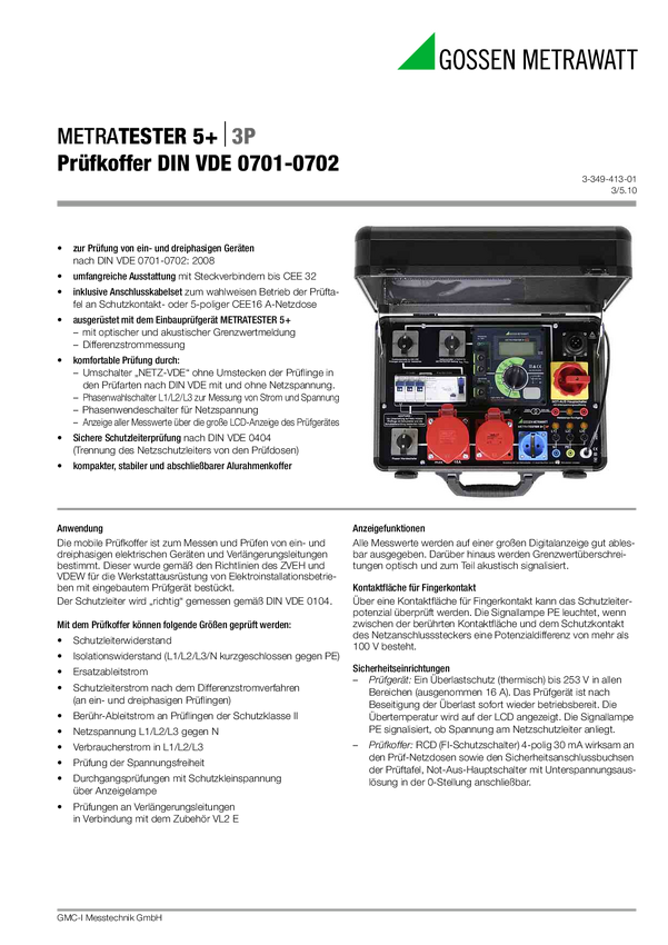 Tester urzadzeń Gossen Metrawatt METRATESTER 5+ Kalibracja (DAkkS)