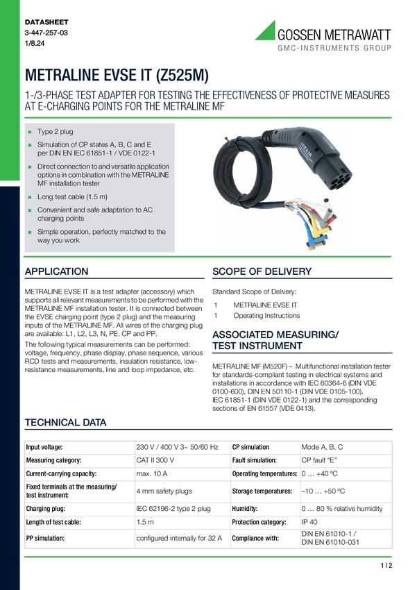 Gossen Metrawatt Z525M METRALINE EVSE IT 1 szt.