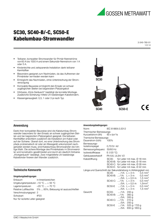 Gossen Metrawatt SC50-L, 750/5A, 0,5VA, Kl 0,5 U584E Przetwornik pomiarowy prądu Prąd pierwotny 750 A Średnica otworu:42