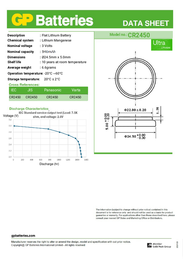 Ogniwo guzikowe CR 2450 GP Ultra 3 V 4 szt. 540 mAh litowe
