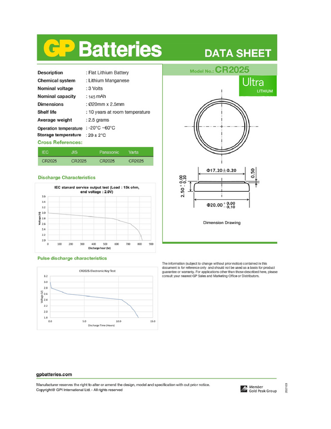 Ogniwo guzikowe CR 2025 GP Ultra 3 V 4 szt. 145 mAh litowe