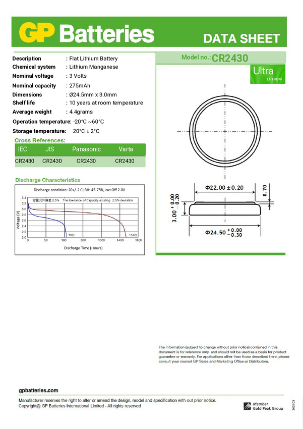 Ogniwo guzikowe CR 2430 GP Ultra 3 V 4 szt. 275 mAh litowe