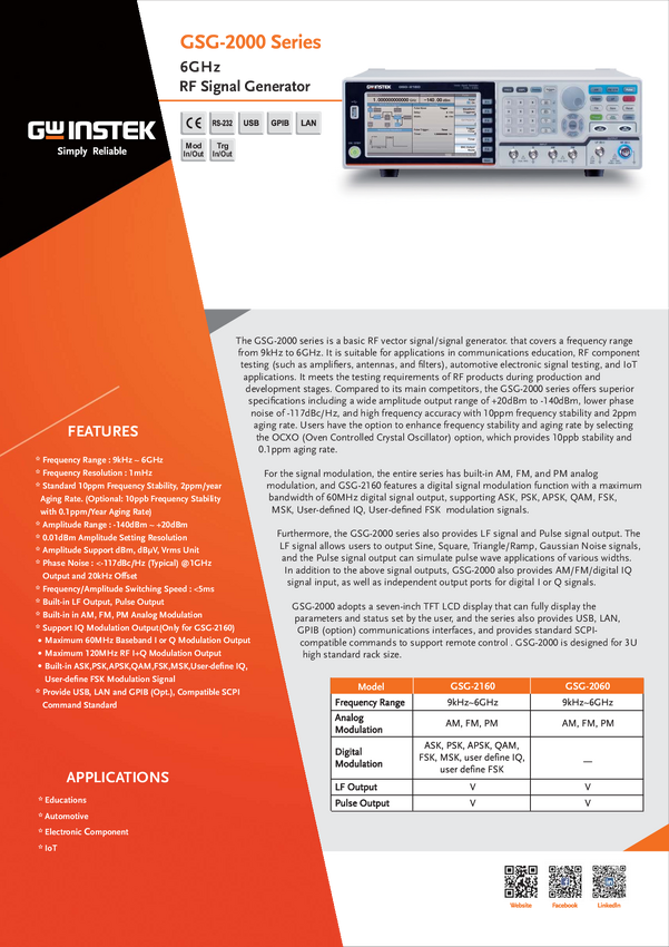 Generator sygnału GW Instek GSG-2060 (GPIB) (CE) RF-Signalgenerator