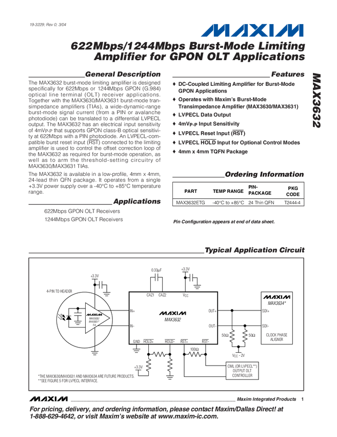 622Mbps/1244Mbps Burst-Mode Limiting Amplifier for GPON OLT Applications