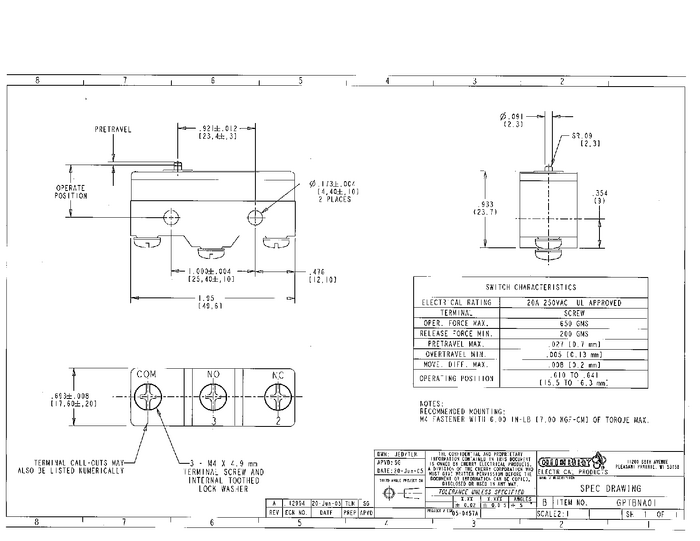 Mikroprzełącznik GPTBNA01 250 V/AC 20 A 1 x wł/(wł) ZF chwilowy 1 szt.
