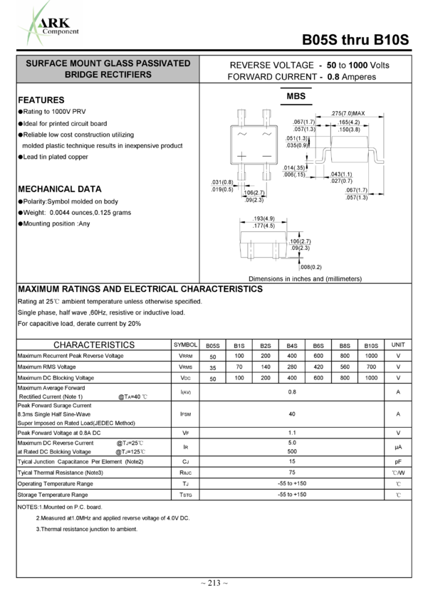 Mostek prostowniczy Graetza SMD 1A, 1000V, DB-1S ARK
