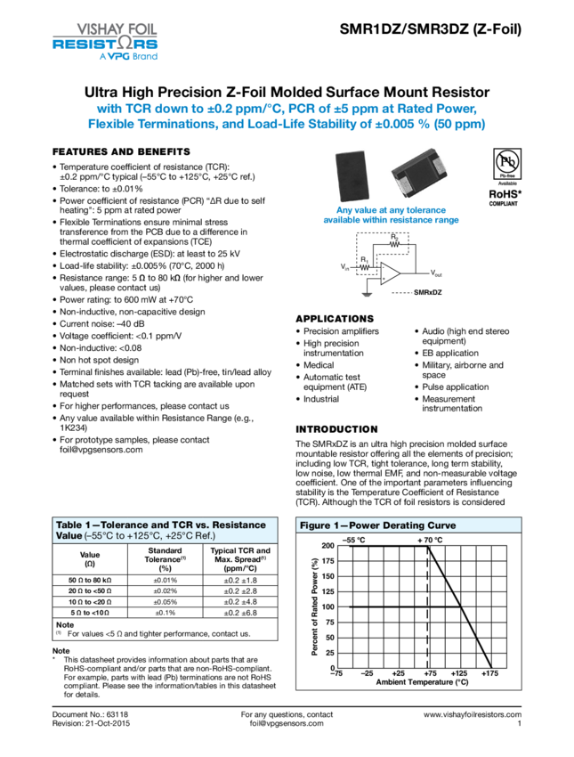 Res Metal Foil 1206 15K Ohm 0.01% 1/4W ±0.2ppm/°C Molded SMD T/R