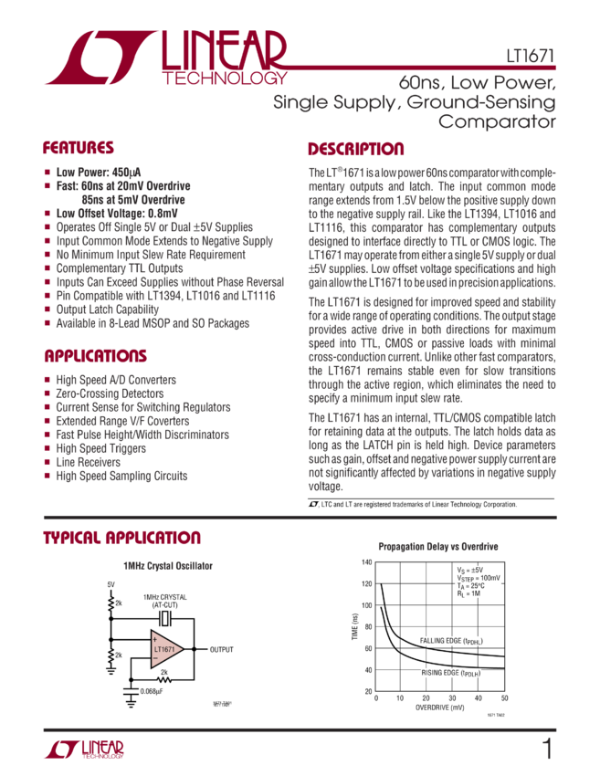 7ns, Low Power, Single Supply, Ground-Sensing Comparator