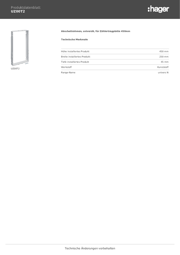 Hager UZ00T2 Rama grodziowa 1 szt.