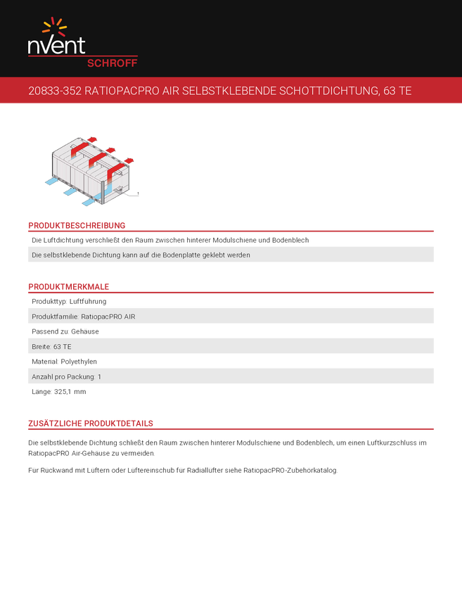 Uszczelka grodziowa nVent SCHROFF 20833352 20833352, 1 szt.