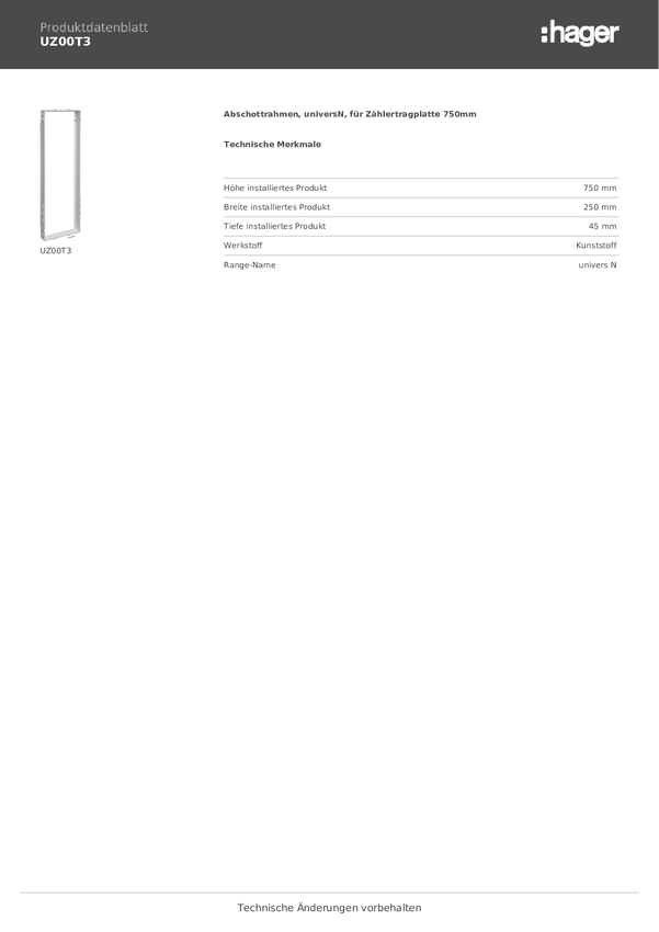 Hager UZ00T3 Rama grodziowa 1 szt.