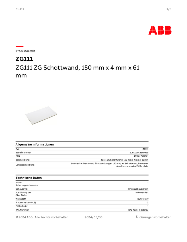 Striebel & John 2CPX039182R9999 Ściana grodziowa 1 szt.