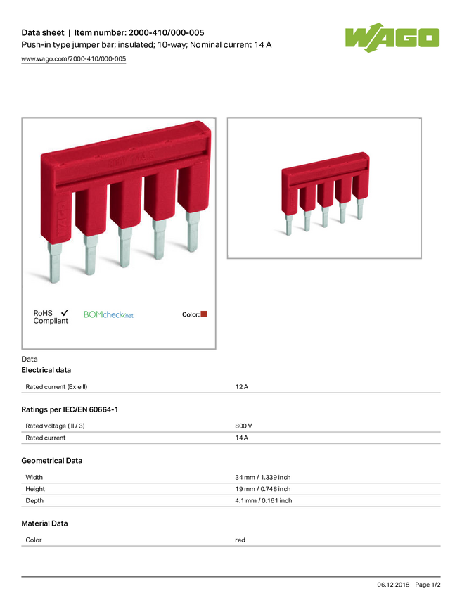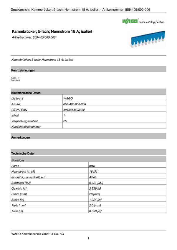 Mostek grzebieniowy WAGO 2002-410/000-006, 25 szt.