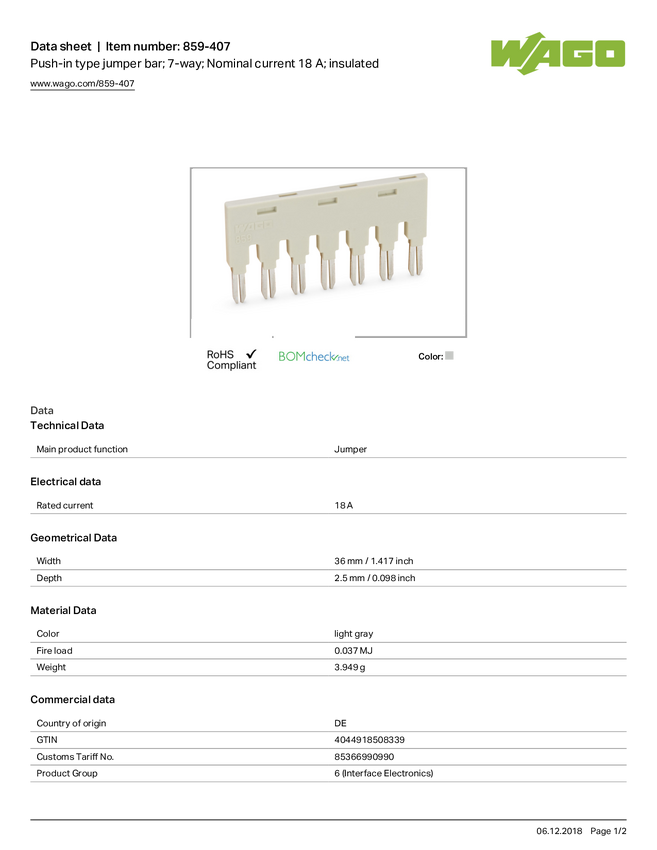 Mostek grzebieniowy WAGO 2004-437, 25 szt.