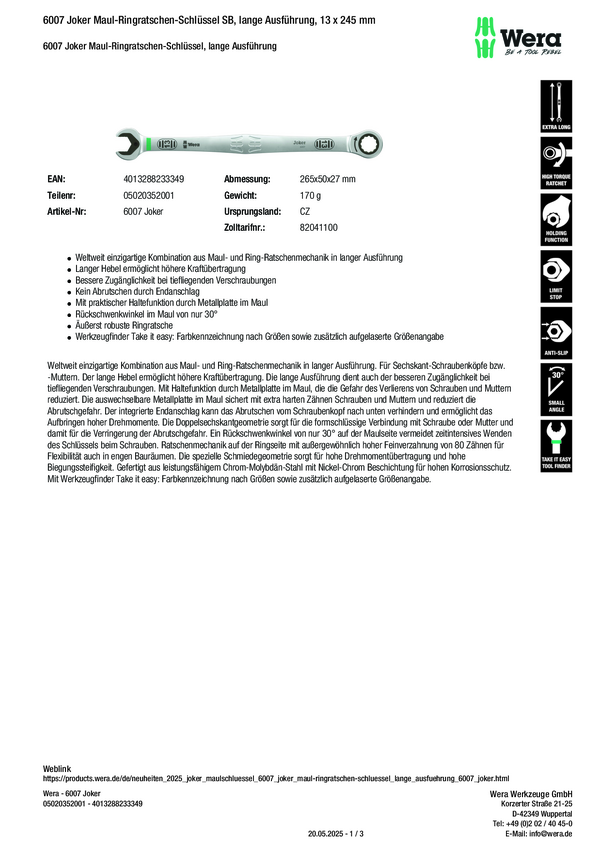 Wera 05020352001 6007 Joker Klucz oczkowy grzechotkowy 1 szt. Rozmiar klucza (metryczny) (tylko do tytułu) 13 mm
