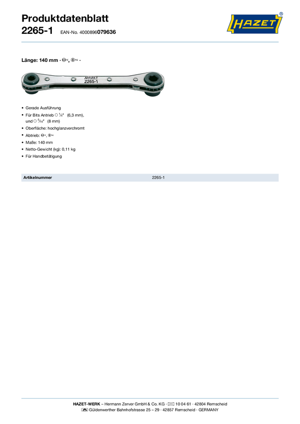 Grzechotka do bitów Hazet neu 2265-1