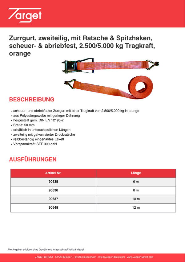 Target Ladungssicherung 90642 Pas napinający dwuczęściowy (D x S) 8 m x 50 mm Grzechotka z długą dźwignią EN 12195