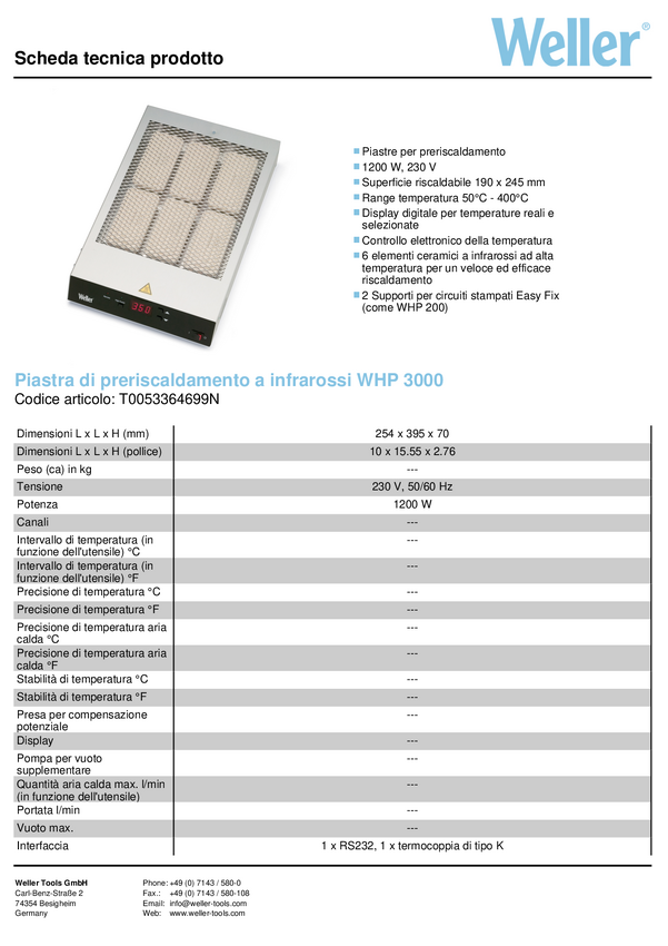 Weller WHP 3000 Infrarot Vorheizplatte Element grzewczy 1200 W 50°C - 400 °C