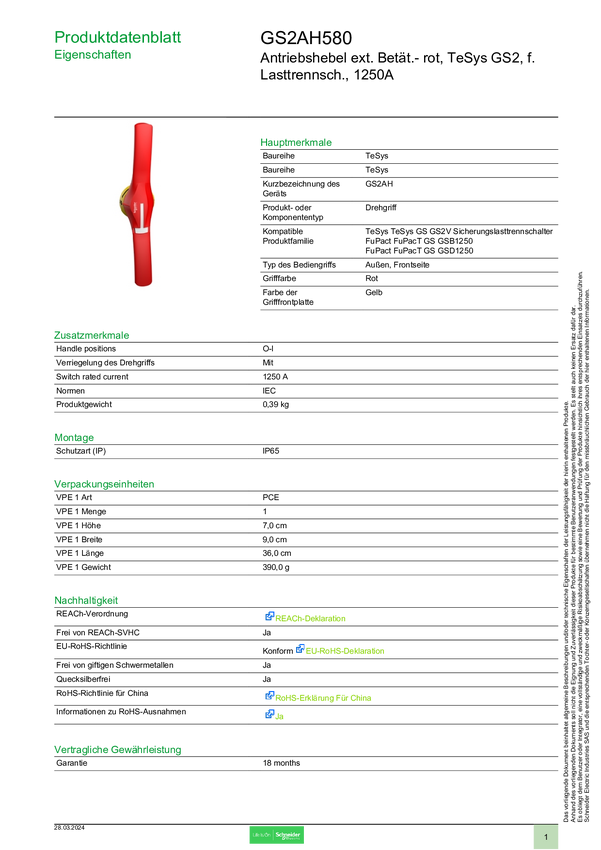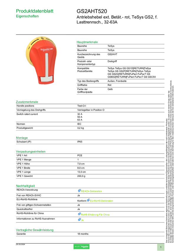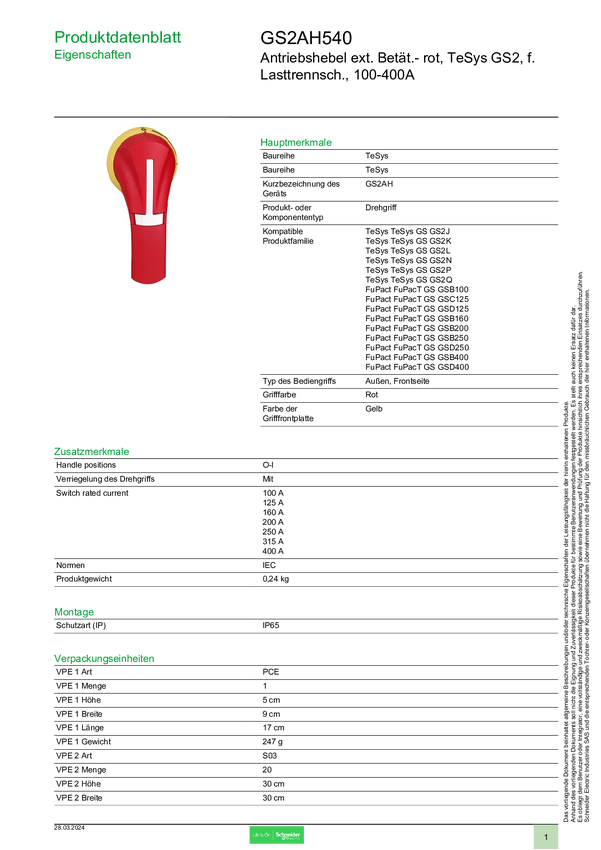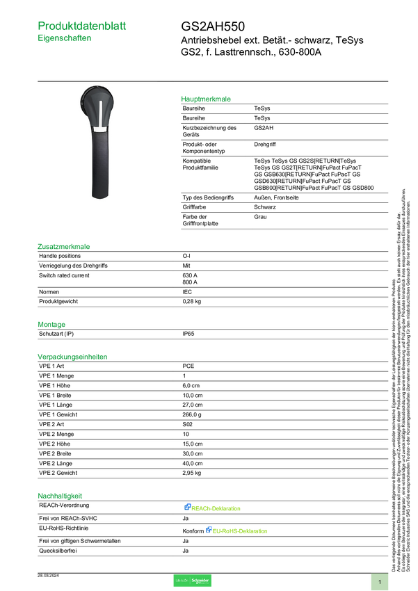 Schneider Electric GS2AH580 Akcesorium do rozłącznika 1 szt.