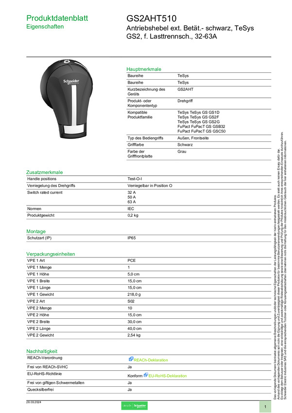 Schneider Electric GS2AHT510 GS2AHT510 Akcesorium do rozłącznika 1 szt.