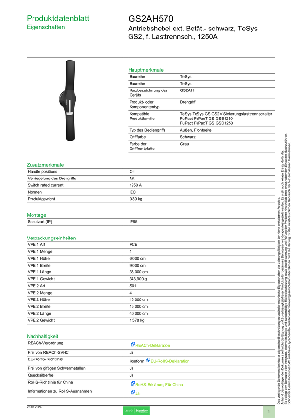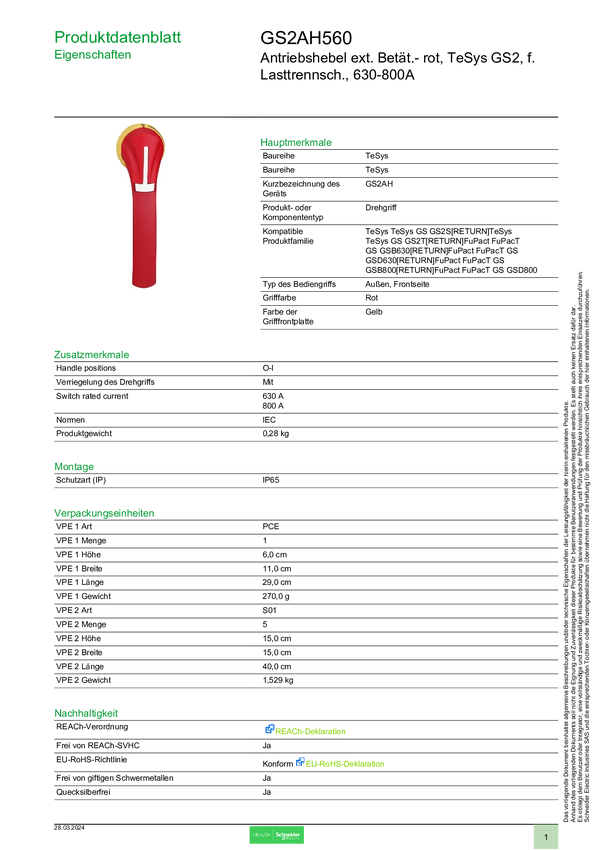 Schneider Electric GS2AH570 GS2AH570 Akcesorium do rozłącznika 1 szt.