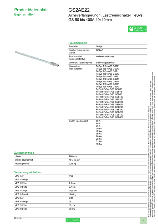 Schneider Electric GS2AE52 GS2AE52 Akcesorium do rozłącznika 1 szt.