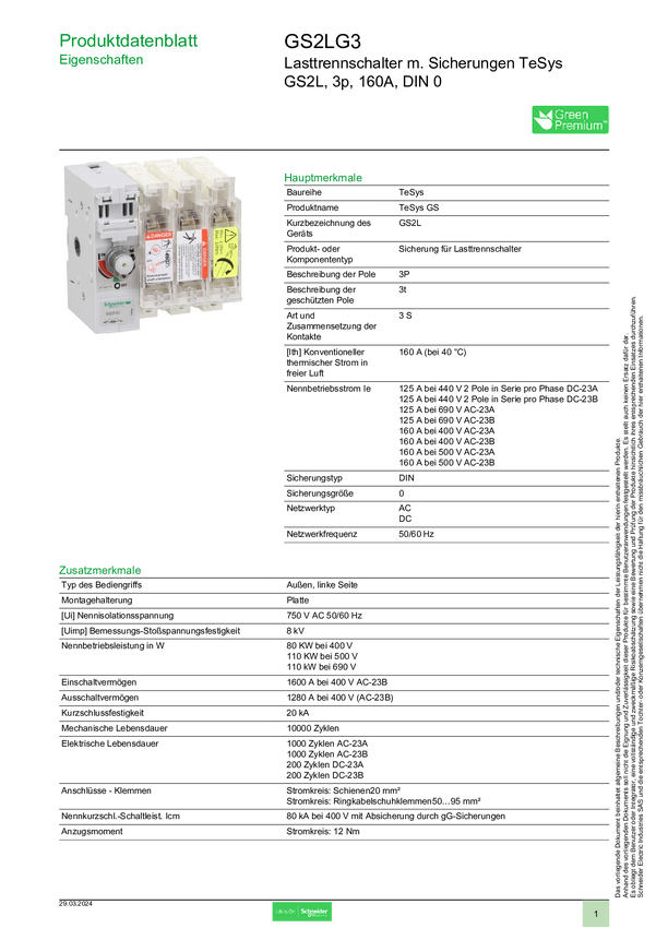 Schneider Electric GS2LG3 Rozłącznik GS2LG3