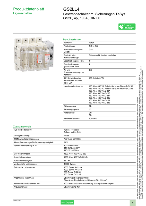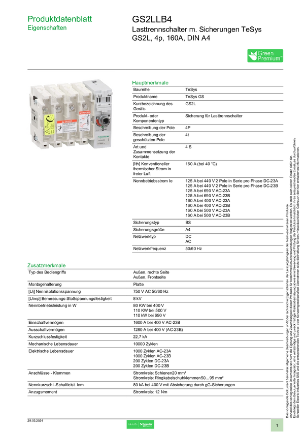 Schneider Electric GS2LL4 Rozłącznik 1 szt.