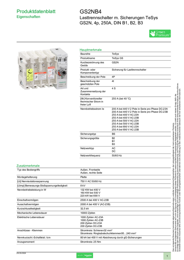 Schneider Electric GS2NB4 Rozłącznik 1 szt.