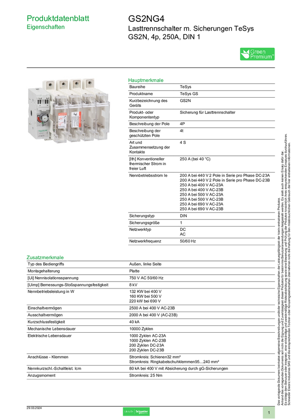 Schneider Electric GS2N4 Rozłącznik GS2N4